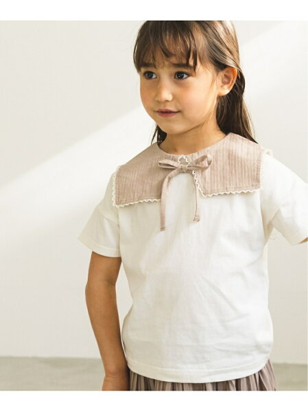 pairmanon(ペアマノン)【プレミアムコットン100】【かぞくおそろい】レースステッチ スクエア セーラーカラー リボン 半袖 Tシャツ ガールズ トップス襟にレースステッチがさり気なくデザインされているセーラーカラーTシャツです。