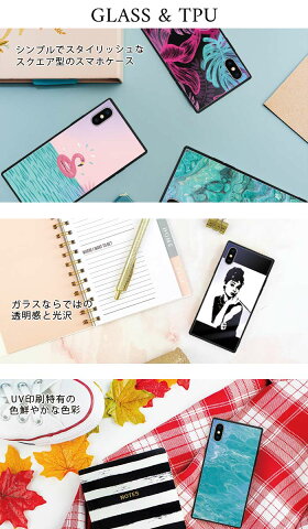 iphone11 pro スマホケース 携帯ケース 携帯カバー ガラスケース スクエアケース ハードケース iPhoneケース スクエア型 四角 耐衝撃 強化ガラス iPhone XS Max iPhone XR iPhone8 GalaxyS9 アニマル 動物 猫 キャット ねこ イラスト ネコ パステルカラー モノクロ