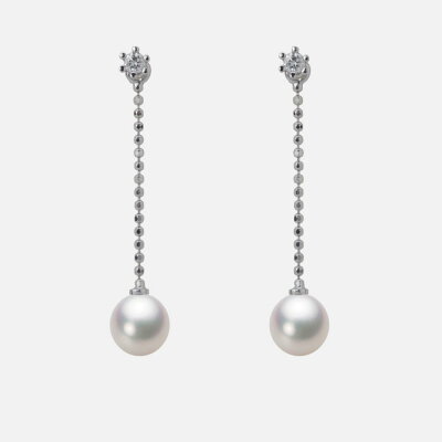 (5段階評価/日本の全生産量ベース)素材・詳細K18WG(ホワイトゴールド)、ダイヤモンド・0.06ct(片側・0.03ct)真珠の産地日本付属品保証書 日本でも、世界でも、アコヤ真珠の高級品の40%以上は当社製です。