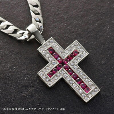 人気のリバーシブル喜平チェーン(CTC00837/50cm版)と人気のルビー/ダイヤモンドクロスペンダントトップを組み合わせたネックレスです。