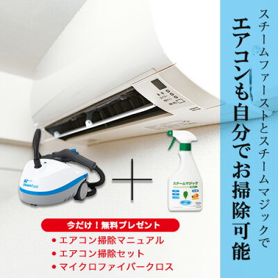 エアコン掃除用カバー、手順書、マイクロファイバークロスのプレゼント!家中ピカピカキャンペーン!スチームファーストDXスペシャルセット(本体、スチームマジック100ml、カルキ除去パウダー)