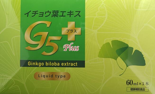 イチョウ葉エキスG5がリニューアルしG5プラスになりました。5つのG、ギンコ(イチョウ)、ジンセン(エゾウコギ)、ジンジャー(生姜)ガーデンペッパー(唐辛子)、ギャバ((カカオエキス)に、新たにベルガモットエキスをほ配合し新発売!