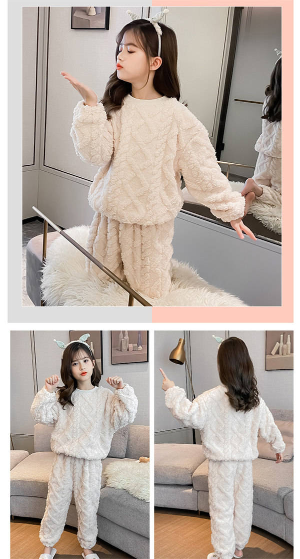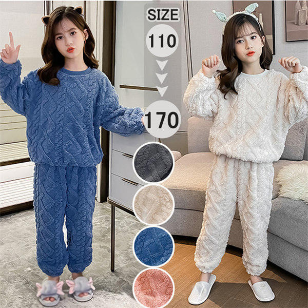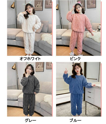 ルームウェア 女の子 白 キッズパジャマ 冬 長袖 上下セット 大きいサイズ もこもこ 子供 寝巻き ナイトウェア 子ども ふわふわ 裏起毛 可愛い 韓国 部屋着 誕生日 プレゼント ロングパンツ ラウンドネック ピンク グレー ブルー 110 150 160 170 dh415d3d3jc