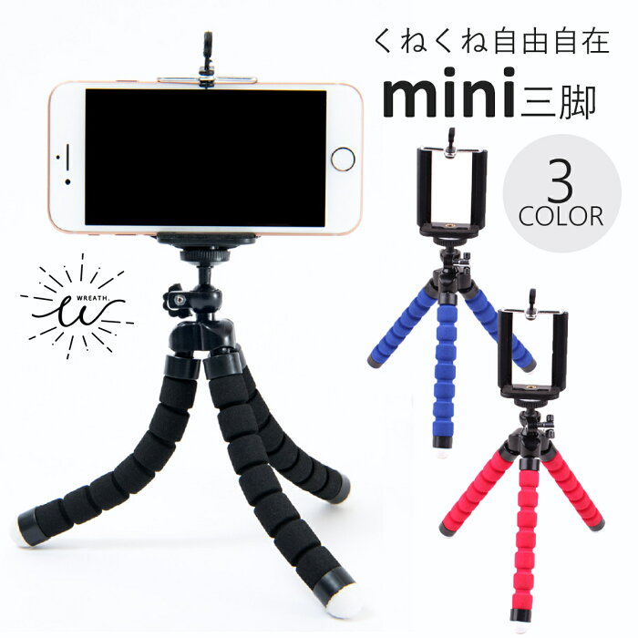 【楽天スーパーSALE ポイント5倍!】 三脚 スマホ くねくね三脚 コンパクト スマホスタンド iPhone スマートフォン デジカメ カメラ ビデオ 折りたたみ ミニ三脚 セルカ棒 自撮り棒 セルフィー 軽量 スマホホルダー