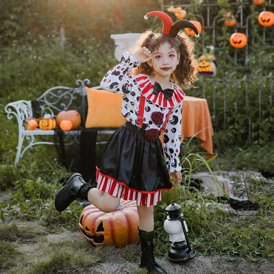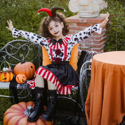 ハロウィン 子供 ハロウィン 仮装 ピエロ 3点セット サーカス 長袖 上着 スカート コスプレ ハロウィン衣装 子供上下セット キッズ 子供用 悪魔 女の子 おばけ 道化師 コスチューム コスプレ 子供服 かわいい精霊衣装 パーティー イベント halloween ふんわり仮装 こども
