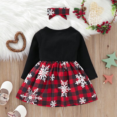 クリスマス ワンピース コスプレ ドレス ベビー服 赤ちゃん 女の子 長袖 衣装 フレアドレス チェック柄 雪の花 リボン 切り替え ガールズ 子供服 可愛い お洒落 雪の花 イベント ダンス衣装 演出 チュールワンピース 記念撮影 新生児 送料無料