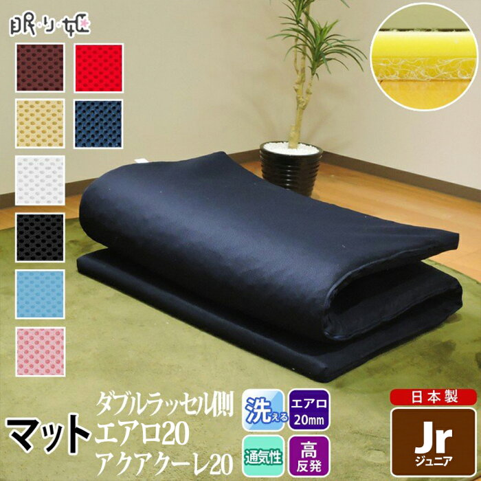 マットレス 洗える ジュニア アクアクーレ エアロ ダブルラッセル ウレタン 通気性 高反発 軽量 へたりにくい ポリエステル 100% 洗濯可 蒸れにくい 体圧分散 敷布団 ベット マット 小さいサイズ 日本製 眠り姫 寝具 送料無料