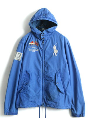 【スーパーSALE 最大半額&P6倍!!】 ビッグポニー ■ POLO ポロ ラルフローレン フード パーカー ジャケット ( メンズ M ) 古着 ヨットパーカー ジャンパー ブルゾン フランス| 中古 RALPH LAUREN ラルフ フランス代表 モデル ジップパーカー フードパーカー ブルー 青 フー