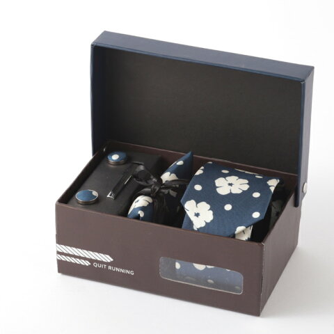英国ブランドメンズギフト4点セット Quit Running ネイビー フローラル ネクタイ ポケットチーフ タイクリップ カフス ステンレス ネクタイピン ハンカチ 花柄 ボタニカル フラワー 男性 クイトランニング プレゼント ギフト 就職祝い 卒業式 スーツ フォーマル 新社会人 紳士 商品詳細 QUIT RUNNING SUIT STYLE 4 SET クイトランニング スーツスタイル 4点セット 【 NAVY FLORAL 】 商品名:qrmens-set013 ・ネクタイ ・ポケットチーフ ・タイクリップ ・カフス 【素材】ステンレススティール100% 専用BOX付属 【全国一律送料無料】 QUIT RUNNINGのネクタイ ベーシックなネイビー3点セットから遊び心のあるデザインまで、シャツやジャケットに映える、様々なスタイルやシーンに合わせやすい ピュアシルク100%のなめらかなネクタイです。